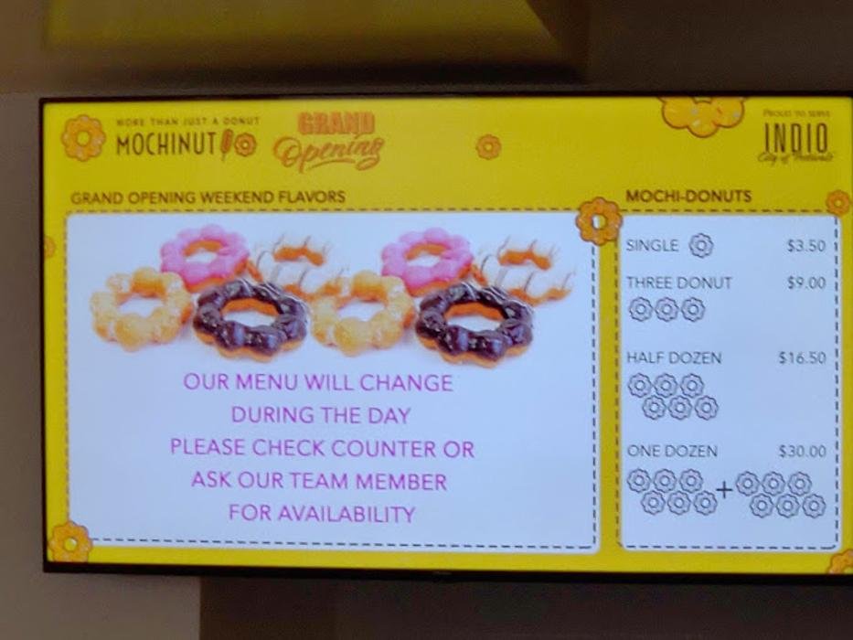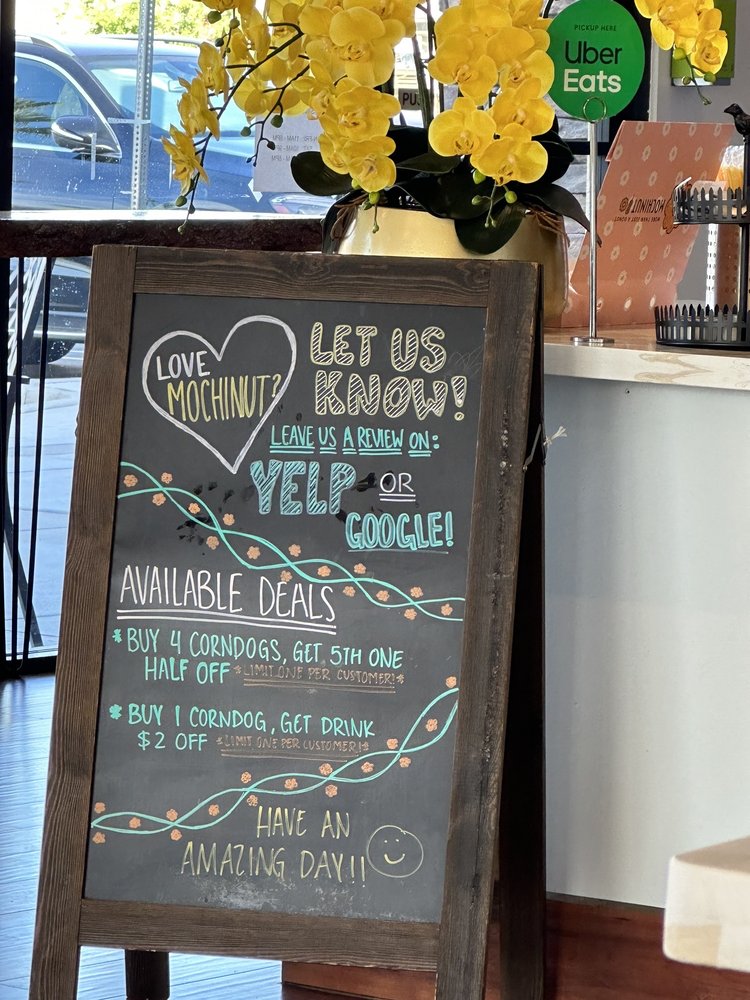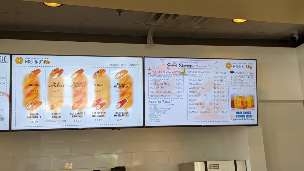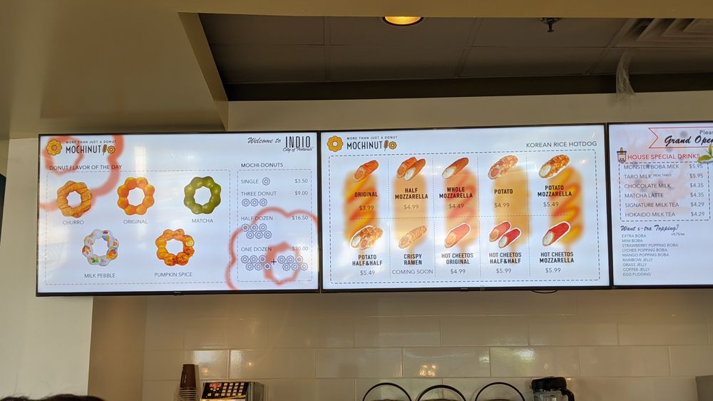 Mochinut is a unique dining experience offering a fusion of hot dogs, donuts, and bubble tea. Located in Indio, CA, this classy establishment provides a range of amenities such as wheelchair accessibility, free Wi-Fi, and outdoor seating. The menu features tantalizing boba options like Matcha Latte Boba and Taro Milk Boba, as well as Korean Hot Dogs with inventive twists like Hot Cheetos and Potato Half and Half. Customers rave about the delicious and fresh Mochinuts, with flavors like Ube standing out. The gender-neutral restrooms add to the inclusive atmosphere, and the friendly staff enhance the overall dining experience. Mochinut is a must-visit spot for those looking to indulge in creative and flavorful dishes in a welcoming environment.